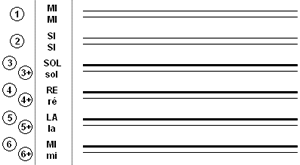 2- A light upward stroke of the index (i), middle (m) or annular (a) fingers plays only the lower-pitched string of the pair. Of course we may still hear the octave string which rings a little (we call this ‘sympathetic vibration’), or indeed because we plucked it in error, (there’s no reason to worry about this – the precision of the right hand increases with practice). You will notice straight away that one of the paired strings is clearly emphasized.